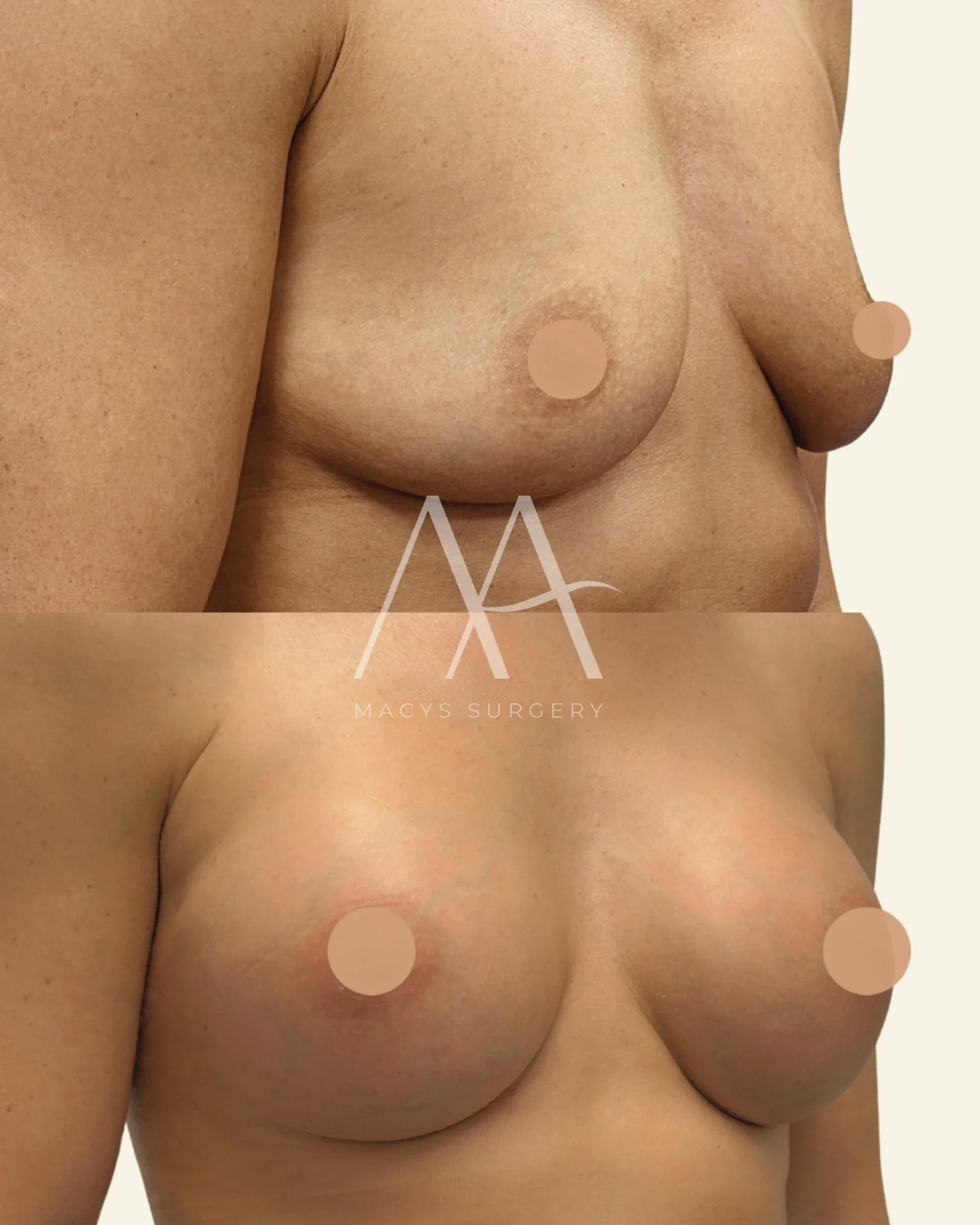 Ideal for: patients who want a narrow cleavage or sometimes smoother transitions between the implant and natural tissue. The procedure often includes liposuction from one or more body areas to enhance overall body shape while refining the breast contour.